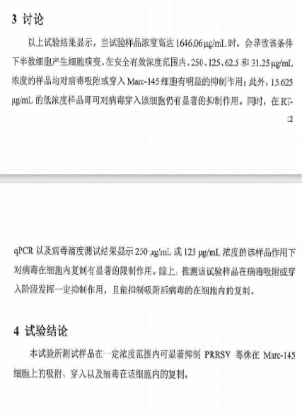 第三方實驗證明,園蘭清可以在阻斷PRRSV與巨噬細胞上結(jié)合、穿入巨噬細胞及抑制病毒在巨噬細胞內(nèi)的復制及釋放三個維度上起效。且劑量較低,后效應維持時間較長。因此,園蘭清在阻斷病毒增殖復制和擴散方面,效果優(yōu)于替米考星和泰萬菌素。