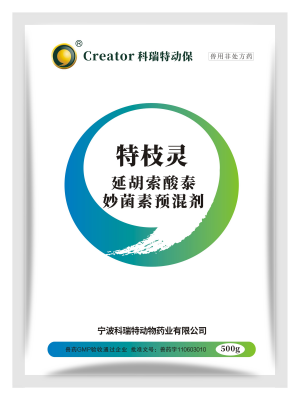 特枝靈屬截短側(cè)耳素類抗生素,高濃度下有殺菌作用,通過與細菌核糖體50S亞基結(jié)合,抑制肽鏈轉(zhuǎn)移酶活性,使細菌蛋白質(zhì)合成作用受阻而起作用。