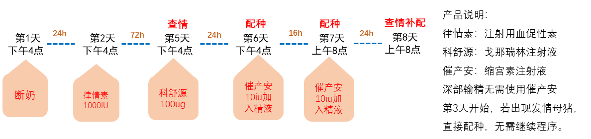5.2.3 斷奶母豬定時輸精方案見下圖。
