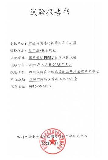 2023年11月20日,收到綿陽職業(yè)技術學院四川生豬重大疫病監(jiān)測與防控工程研究中心發(fā)來的試驗報告,公司委托的園蘭清對藍耳雙陰豬攻毒保護試驗獲得圓滿成功。