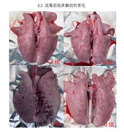 大體解剖更為直觀的看出,用藥組的肺大體病理變化明顯比對(duì)照組輕微,因此可以更為直觀的體現(xiàn)出園蘭清的在預(yù)防和治療豬藍(lán)耳病的上意義。