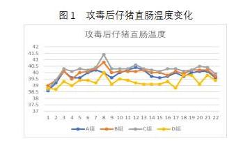 3.1園蘭清對(duì)攻毒后仔豬直腸溫度的影響