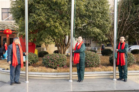 2024年1月25日8時08分,寧波科瑞特動物藥業(yè)有限公司高層領(lǐng)導和全體員工在辦公樓前舉行升旗儀式。