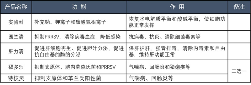 藍耳陰性場:實肯耐1kg+肝力清1kg+特枝靈200g或福多樂800g