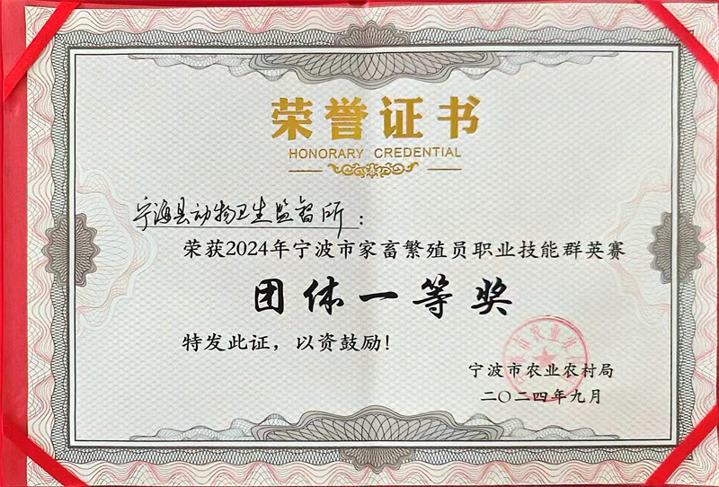2024年9月26-27日,“寧波市家畜繁殖員職業(yè)技能群英賽”在寧波奉化區(qū)成功舉辦。寧波科瑞特動(dòng)物藥業(yè)有限公司3位技術(shù)老師劉明東、李小劍、滕召海作為寧??h代表參賽。