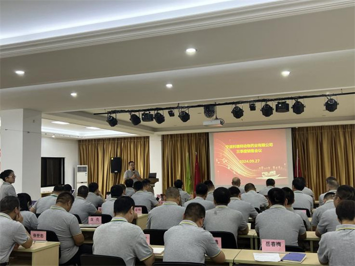 2024年9月24日—9月28日,寧波科瑞特動(dòng)物藥業(yè)有限公司召開了“2024年科瑞特三季度”銷售會(huì)議??迫鹛毓靖邔宇I(lǐng)導(dǎo)、各部門負(fù)責(zé)人、各區(qū)域銷售精英等齊聚一堂,對(duì)上半年的工作進(jìn)行全面復(fù)盤,對(duì)第四季度的銷售工作進(jìn)行調(diào)整規(guī)劃。